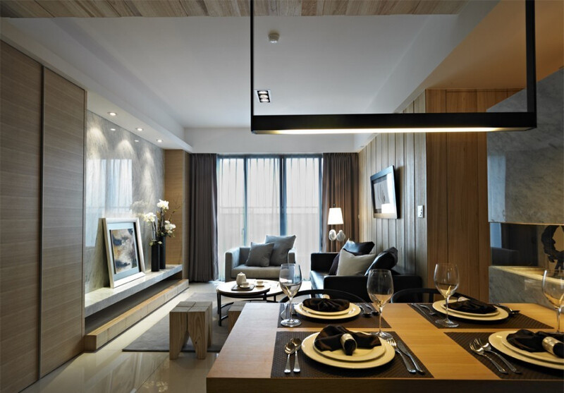 單純的用色環境,搭配家具、軟件,使空間有著安穩靜謐的反饋;用餐區和客廳串連,藉由鏡面的反射,在微型空間中製造直向的延續視野,餐桌上的互動,讓生活情感也持續加溫。
