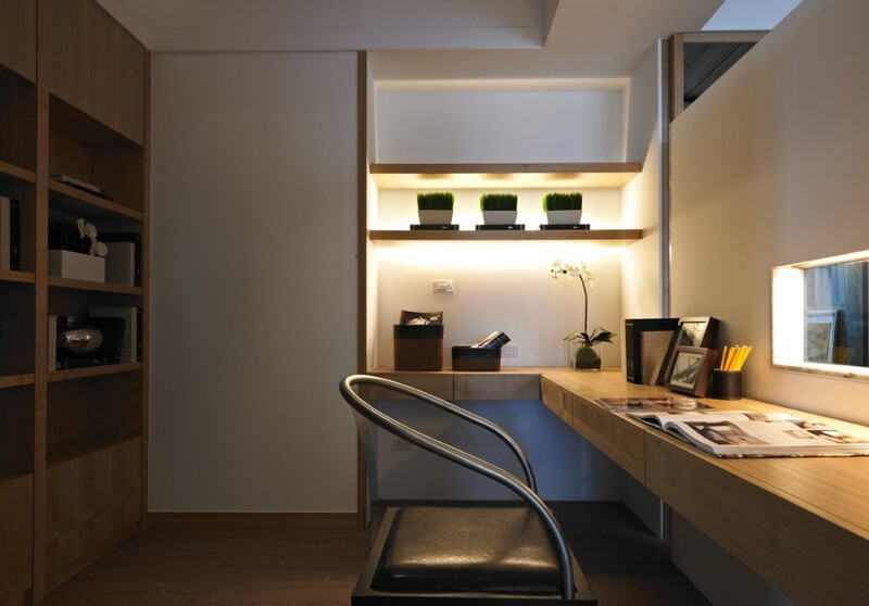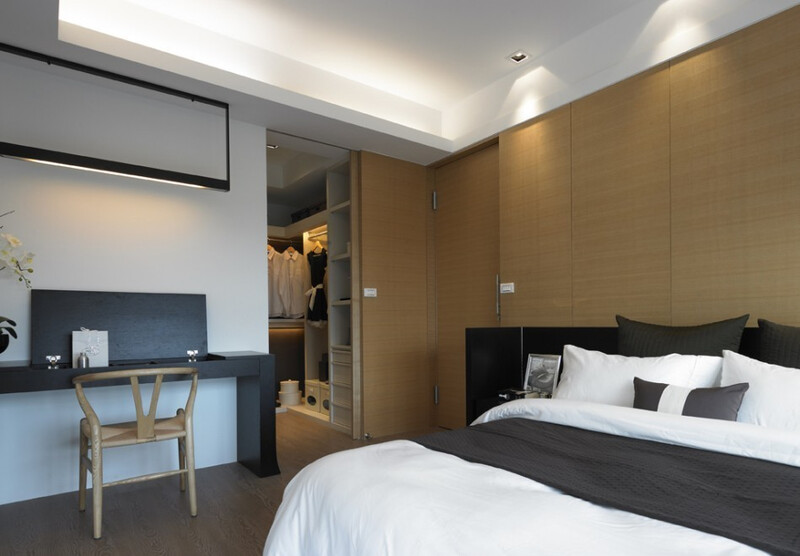 書房穿透的設計充分反映著空間的釋放,無形之中又有界限,隨著自然木紋在廊道中呈現,將空間帶入溫潤的舒適,遞延至睡眠空間;潔淨的白、木質的潤、沉穩的黑,整室呈現安定又宜人的氛圍。