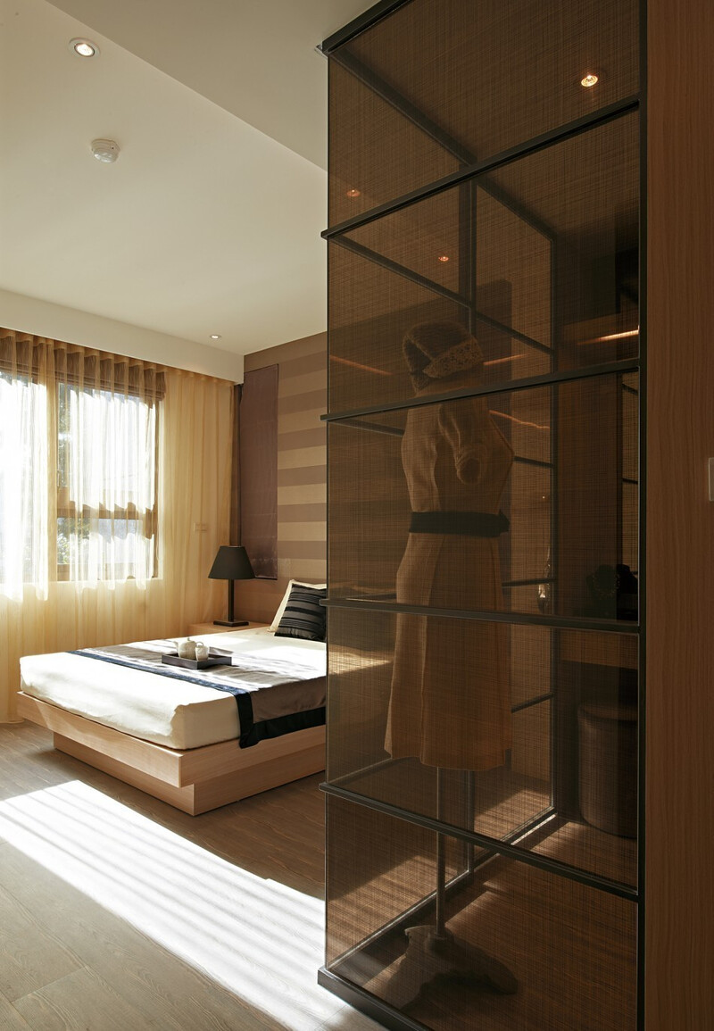 臥室場域延續了公共空間的材質及色系,簡約的線條勾勒出主體架構,陽光灑至屋內時能因窗簾的遮蔽,而弱化了光線,卻仍能保有良好的採光,再藉由材質運用,彷彿身處於大自然般的舒適意境。整體空間在木材質與白空間的圍塑之下,令人置身其中感受到放鬆舒適的氛圍,成為家人之間最溫馨的城堡。
