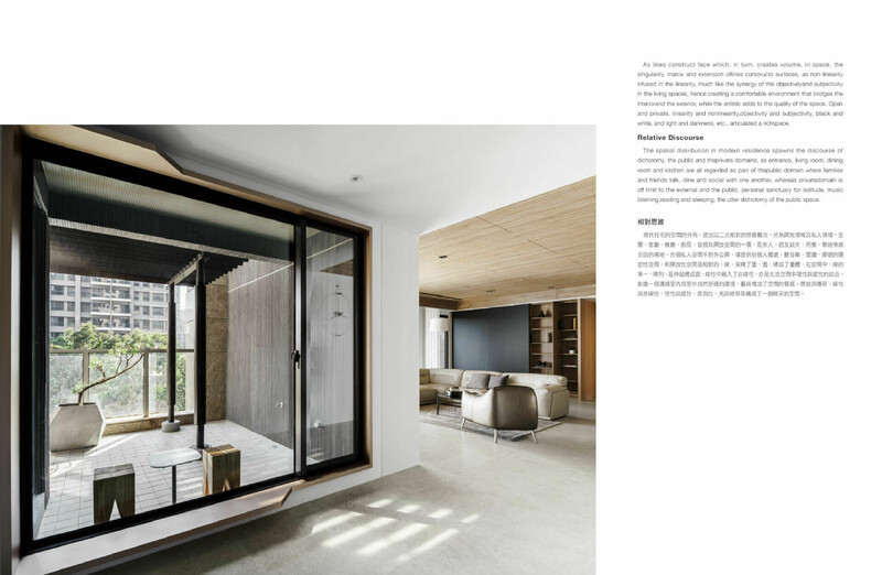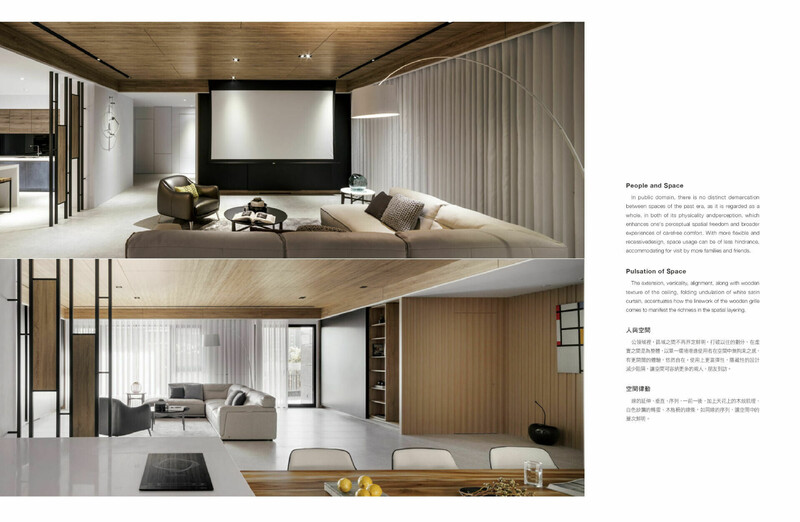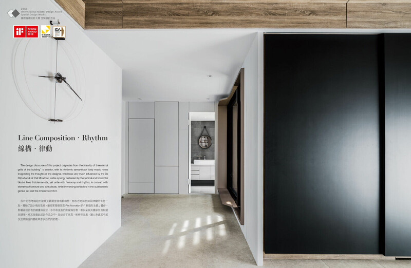 在空間中,線的單一、陣列、延伸組構成面,輔以家飾的圓,線性中融入了非線性,方中有圓、圓中有方,亦是生活中理性與感性的結合。經由構圖和色彩單純的形式,體現秩序現象與均衡之美,藝術增加了空間的質感,並導入智能式生活,打造一個智慧居家及自然舒適的環境。