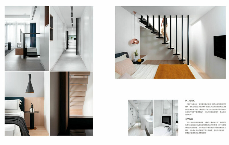 空間,屏除繁複的皮相,以單純的線進行,線的劃分構成了面,經緯交織使面的呈現有了豐富的樣貌。住家給人舒適之外也要可以長時間的居住,純粹的空間就會給人安心感。線性的衍生,純粹的空間是此案設計的想法。源自於對環境的觀察,建築本體及公共大廳天花垂吊的格柵線條,梯廳牆面間石材的拼接劃分隔線語彙呈現一種現代美感,將這樣的語彙轉移,線條勾勒或顯現、或隱藏於空間之中。空間以白色為基底,線性為架構,線和面、幾何的構成,營造出線條和幾何的純粹,加入虛實的設計手法,表達空間的簡約質性。